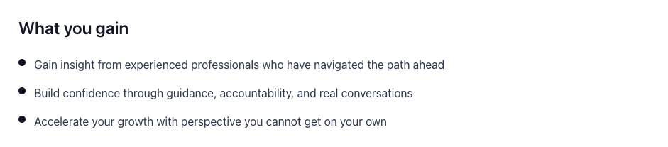 Every professional reaches a point where guidance makes the difference. A mentor brings perspective, clarity, and support that helps you move forward with confidence. This program is designed to connect you with someone who has been where you are and is ready to help you take your next step.